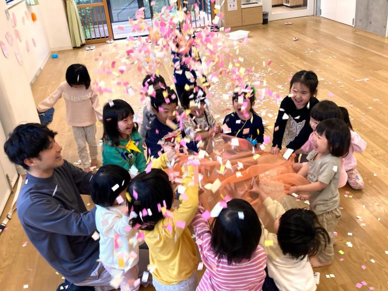 体を使った遊びを一緒に楽しむ。子どもの興味や発達を捉えて遊びを促す。色々なところに出かけて発見や体験を共有する。遊びを通して子どもたち同士のつながりを展開していく。