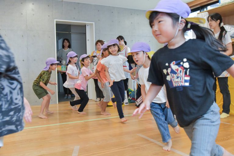 むしろ、日常的な戸外遊びや毎週行っているサーキット運動あそび、園にあるネットやボルダリング、屋上にあるボックス遊具や雲梯等々の遊びによって、子どもの運動能力は向上していきます。運動会は、あくまで子どもたちの現時点での運動能力・身体的な成長を披露する場です。そのため、日常生活や遊びの延長線上として、内容も組み立てています。