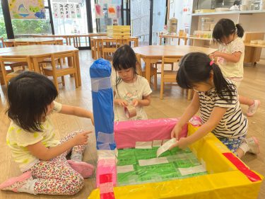 お菓子の箱でつくったカバン…、サランラップの芯でつくった剣や謎の装置たち。最近、園でつくった不思議なものたちを、お子さんが持ち帰っていませんか。 そら・かぜ・たいよう組では、こうした空き箱や使い終わった素材を用いた「廃材遊び」を積極的に取り入れています。まず、この「廃材」には、こんな特性があります。 […]