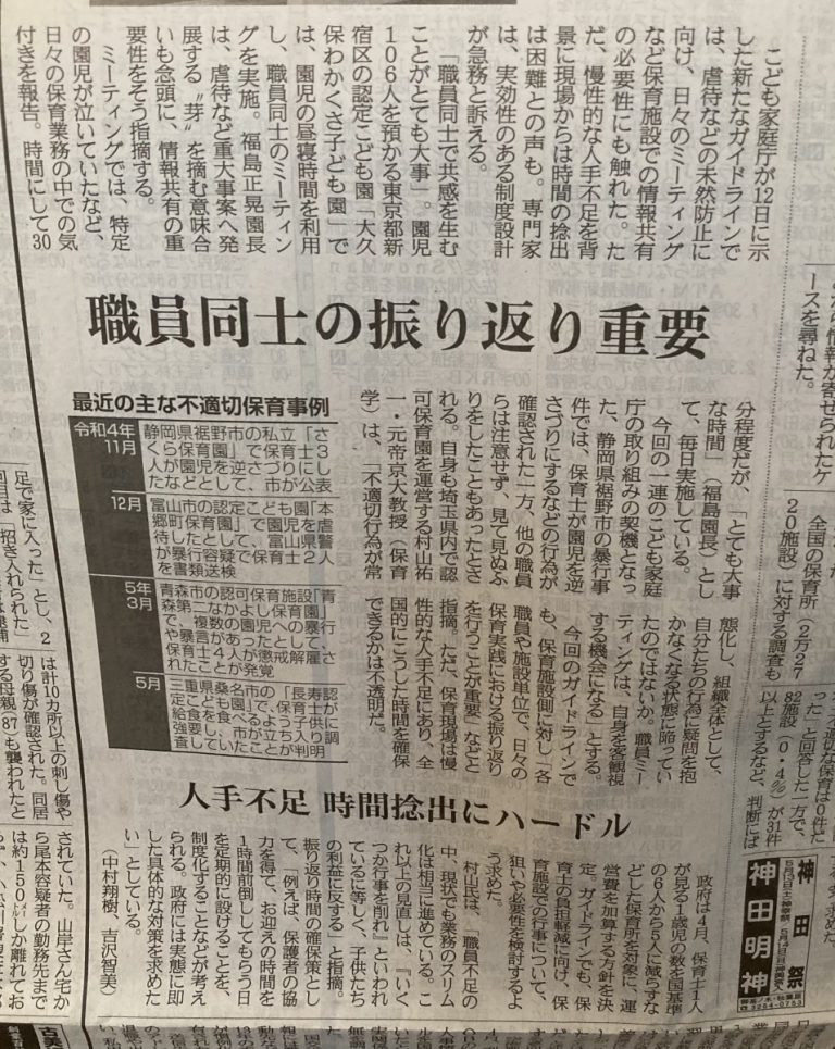 先日、園長が産経新聞の電話取材に応じた内容が記事になりましたので、メディア掲載情報を更新しました。